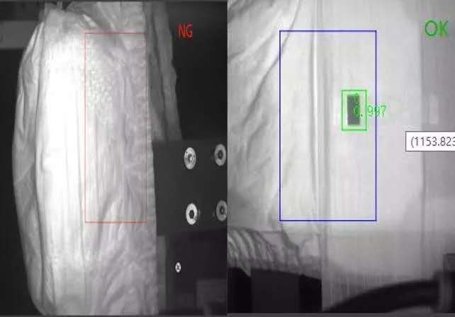CCD4檢測項(xiàng)目(線掃相機(jī)):檢測鼻條不良(無鼻條、鼻條位置偏移)、耳帶不良(無耳帶、多耳帶、耳帶斷裂)、折疊層數(shù)、折子不良(折子間, 距不符、折子距邊尺寸)、點(diǎn)焊不良(點(diǎn)焊位置不符、點(diǎn), 帶方, 式錯誤);