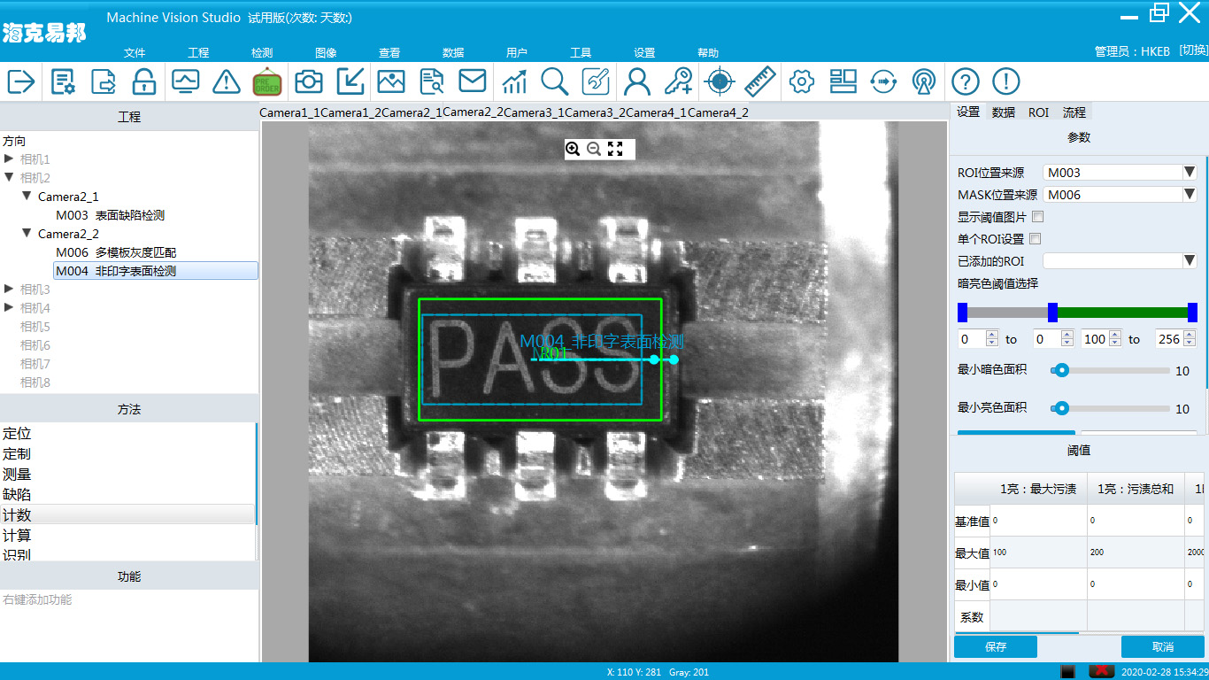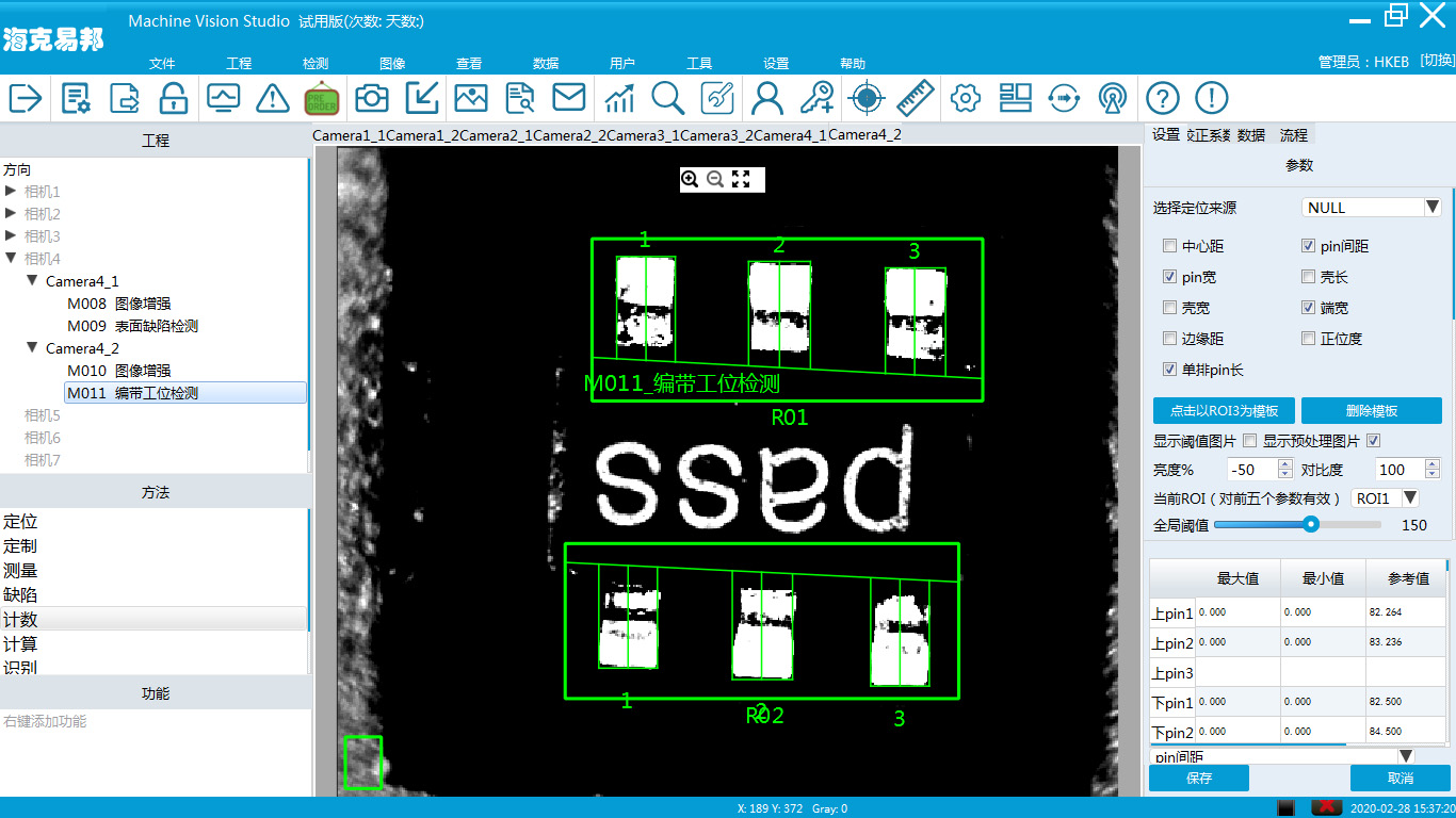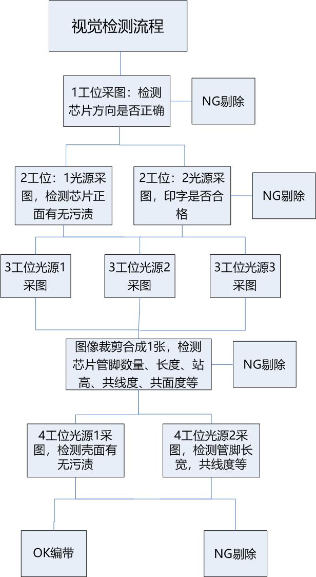 本系統采用四個相機,分為四個工位對半導體芯片進行檢測,分別是: