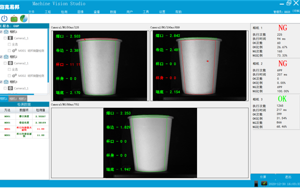 一、紙杯檢測專用系統介紹: 本產品是針對紙杯視覺檢測處理專項定制的一款成熟穩定的產品。軟件操作調試簡單,硬件部分集成相機控制,光源控制,信號輸入輸出對接于一體化的產品。
