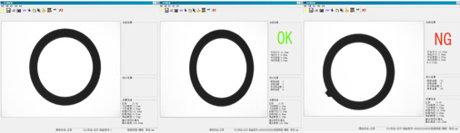 開機(jī)后,按啟動(dòng)按鈕,設(shè)備進(jìn)入自動(dòng)運(yùn)行狀態(tài),依次設(shè)定好“主孔”“裝配孔”“膠圈”工程,物料進(jìn)入傳送帶后,根據(jù)已設(shè)定的工程,對(duì)不同產(chǎn)品進(jìn)行檢測(cè)。窗口的右上角的指示燈,綠色為合格,紅色為不合格。如果工件的位置放置不正確,系統(tǒng)找不到主孔的情況下,系統(tǒng)會(huì)提示調(diào)整工件的位置。做到合格品與不合格品的分揀,當(dāng)檢測(cè)到不良時(shí),可將不良品分揀收集。選擇診斷功能后,打開診斷,則系統(tǒng)每檢測(cè)一次,會(huì)彈出診斷圖像窗口。不需要此功能時(shí),點(diǎn)擊“關(guān)診斷”則關(guān)閉診斷功能。