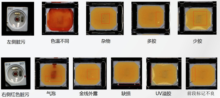 LED缺陷AI視覺檢測系統由海克易邦自主研發,適用于貼片LED底部缺陷,正面反料、側料、倒料、缺料、邊緣毛刺檢測及包裝復檢,檢測速度高達45K/小時。過檢率小于萬分之三,無漏檢。檢測規格包含LED-1010、LED-2121、LED-2835等規格的貼片LED。本產品使用深度學習算法,產品具有高效性,準確性,可擴展性強等優點,突破了傳統算法限制。